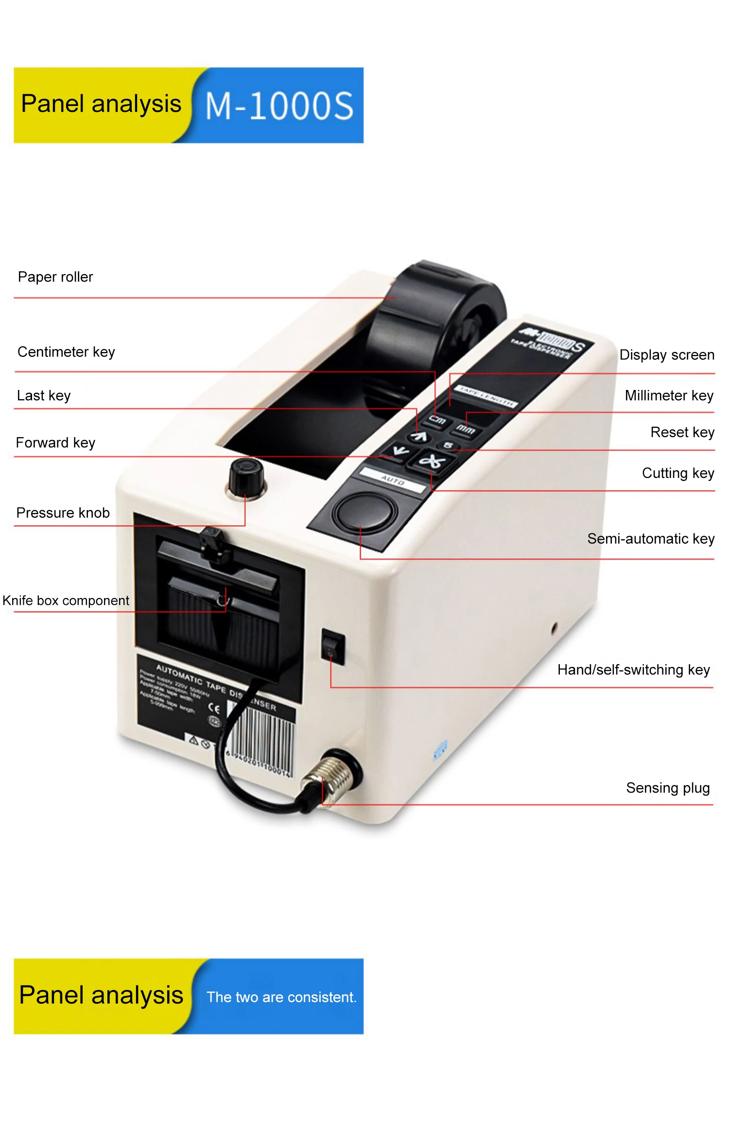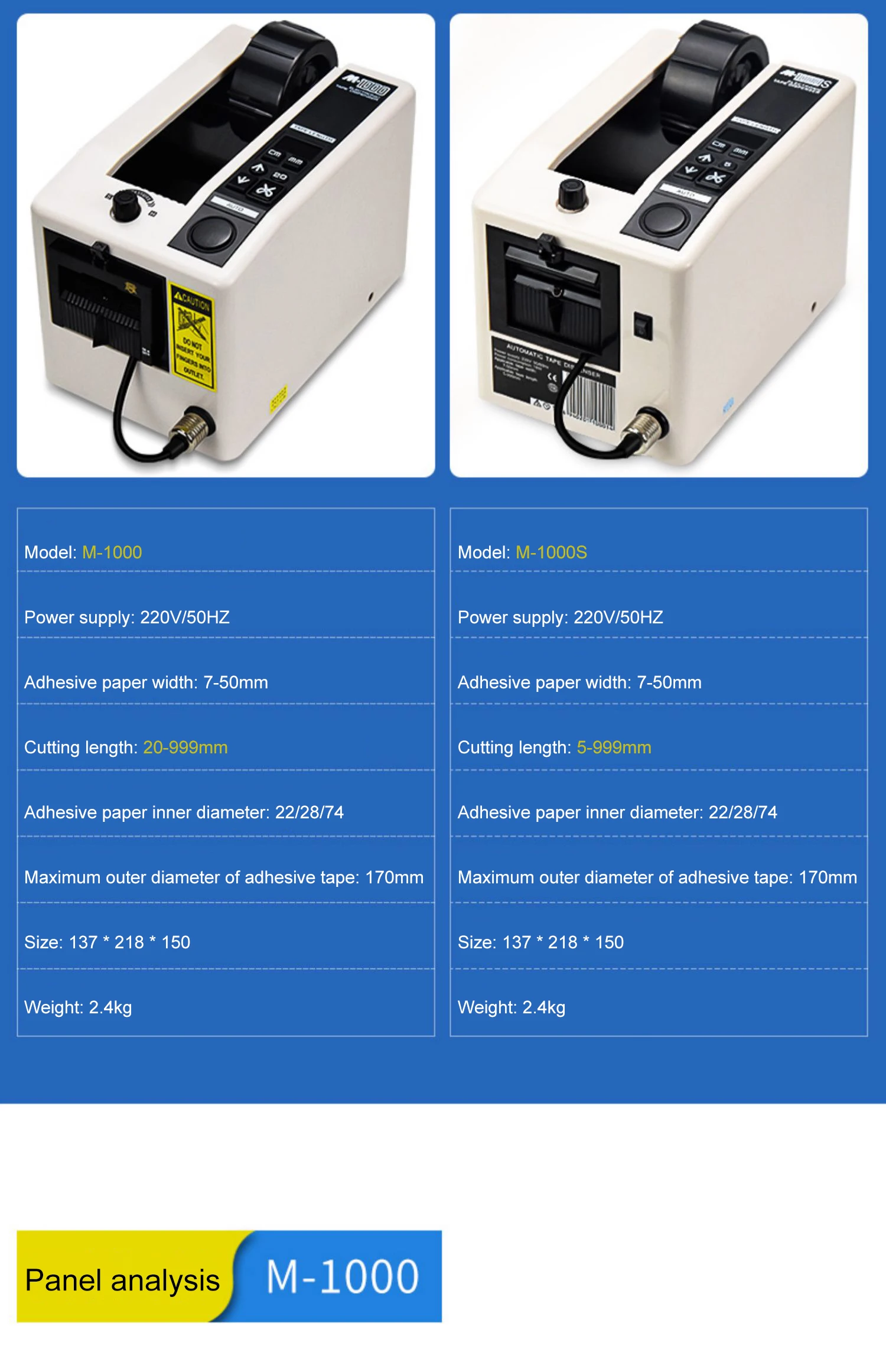 Automatic Packing Tape Dispenser M-1000 Auto Tape Adhesive Cutting Machine M-1000S Electronic Tape Dispensing Cutter