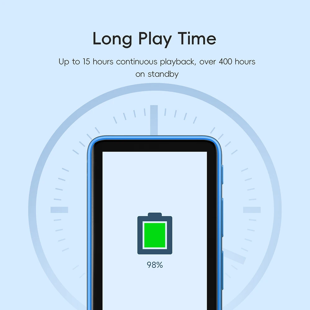 Up to 15 hours continuous playback, over 400 hours on standby.