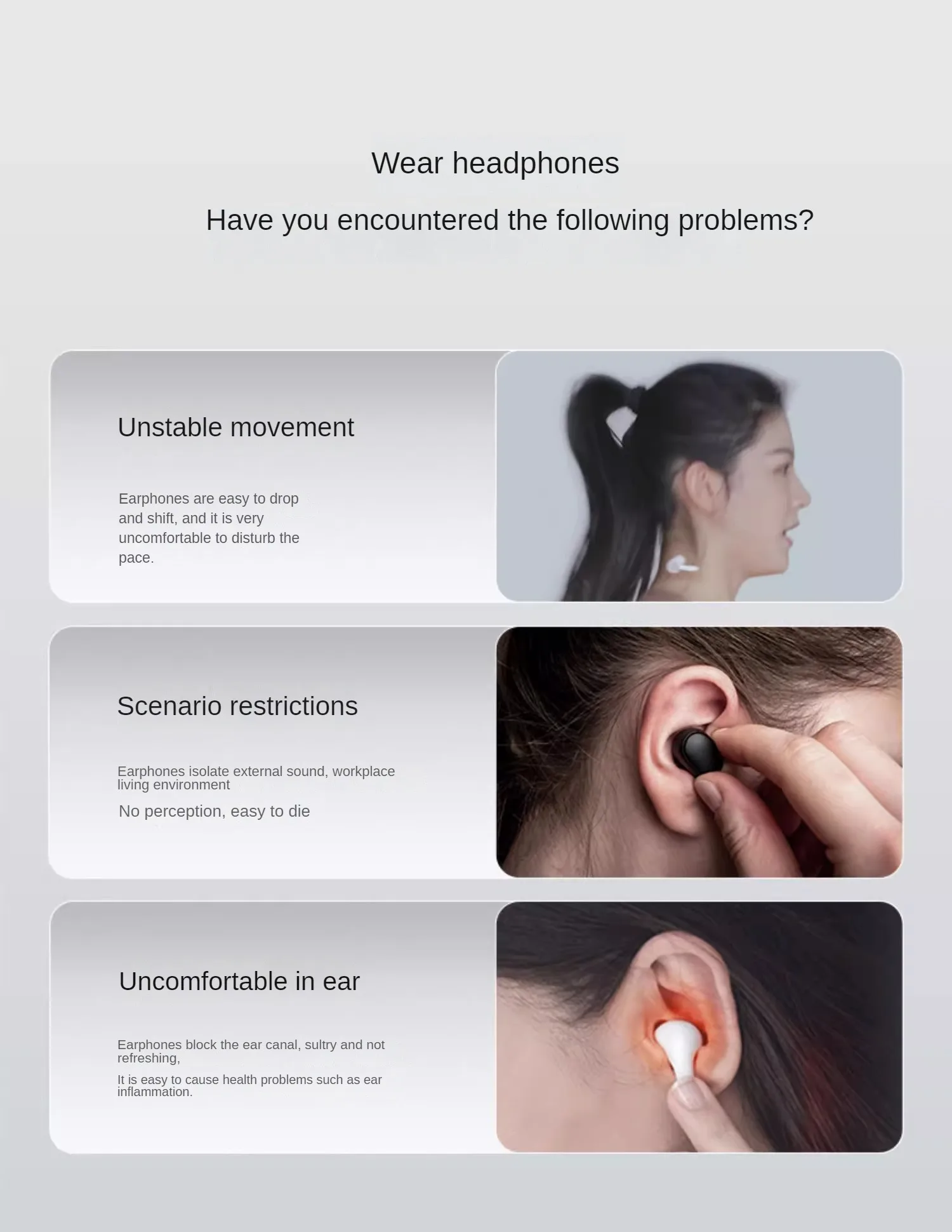 1. Based on the wearing test results obtained from the SHOKZ professional laboratory, the actual wearing experience may vary from person to person due to differences in ear shape.