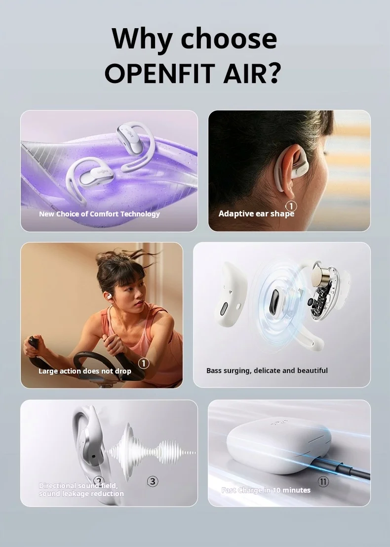 9. OpenFit Air is equipped with Qualcomm's cVc8.0 call noise reduction technology, which performs beamforming, adaptive filtering, and other processing on the received signal to achieve noise suppression and echo cancellation, improving call quality in noisy environments.